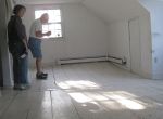 - Pat Brown shows BHHC members Sharmila Bhatia and Kerstin Harper the unfinished basement under the old portion of the house. Pat confirmed rumors of a tunnel leading away from the south wall of the basement. There also is an access to a deeper room with a cistern that was probably used for cold storage of food.
