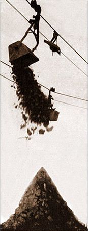 Example of cargo cableway in coal mining. Ropeways were an important means of transportation during the early 1900s.